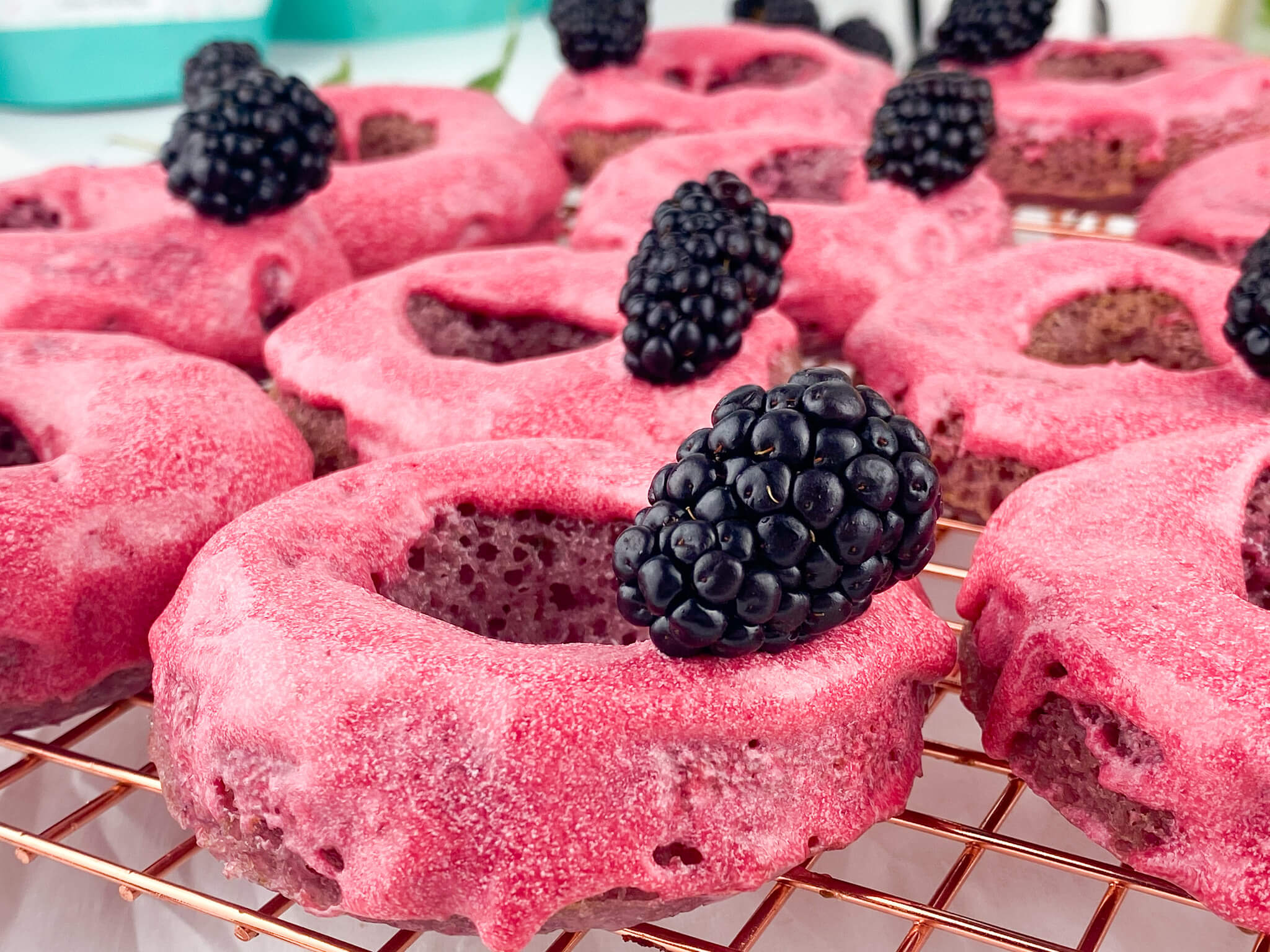 We love to make donuts with our mixes – it’s so fun and a great way to bring a little happiness to the start of our day. My daughter is a big fan of blackberries and was very excited when I suggested blackberry donuts for breakfast! Made with fresh blackberries and our Vanilla Cake Mix and Vanilla Frosting Mix. This recipe really screams Spring which is just around the corner!
