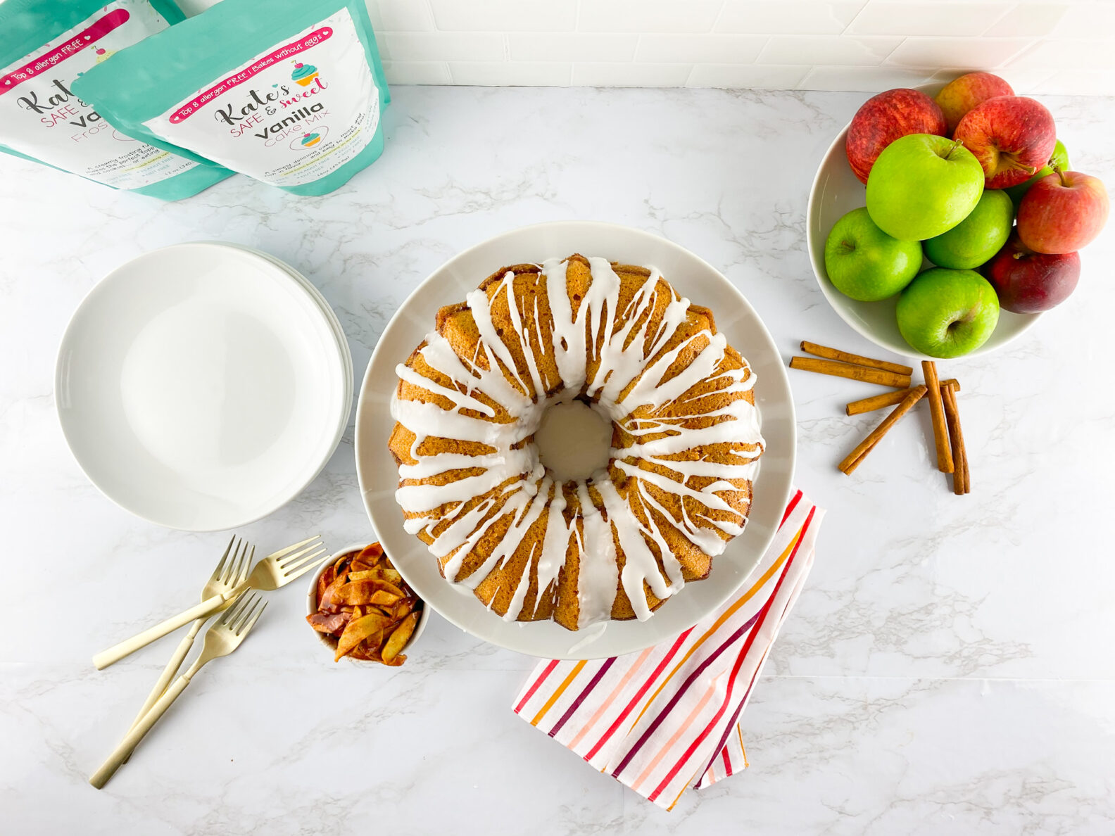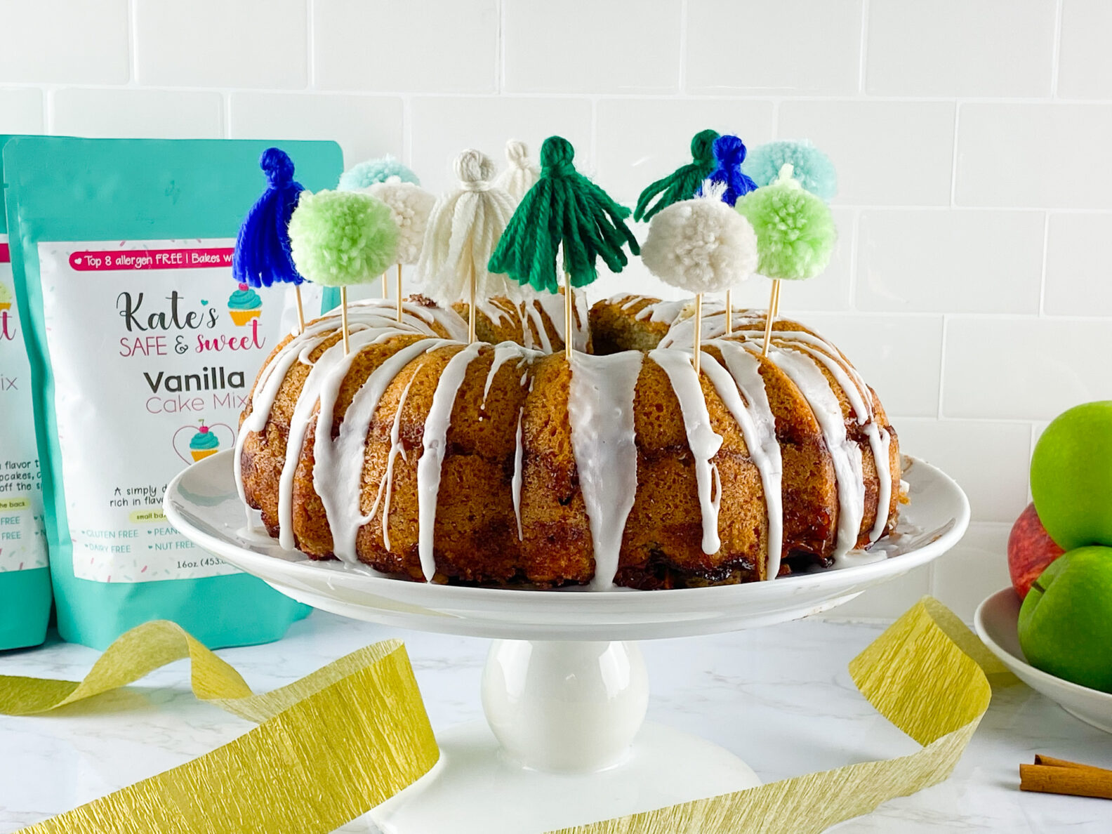 - Two bags of Kate’s Safe & Sweet Vanilla Cake Mix