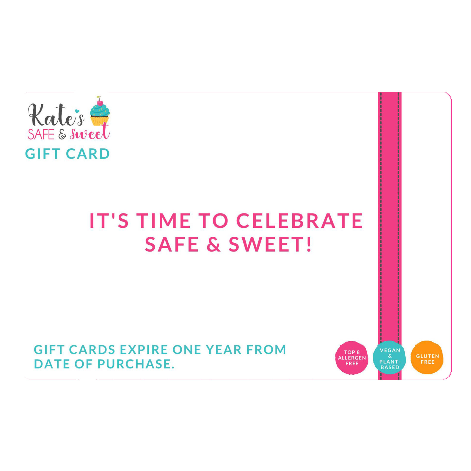 Shopping for someone else’s special day but not sure what to give them? Give them the gift of choice with a Kate’s Safe and Sweet gift card and let them pick their favorite cake and frosting flavors, brownie mix, sprinkles, or a baking box – or one of everything!