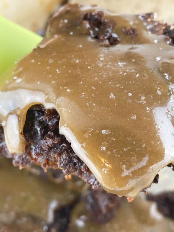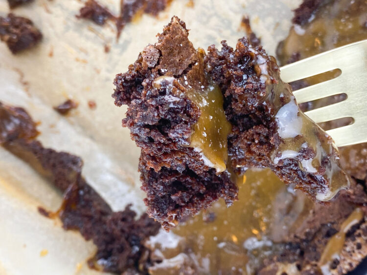 This makes for one ooey gooey brownie – definitely need a fork for this one!